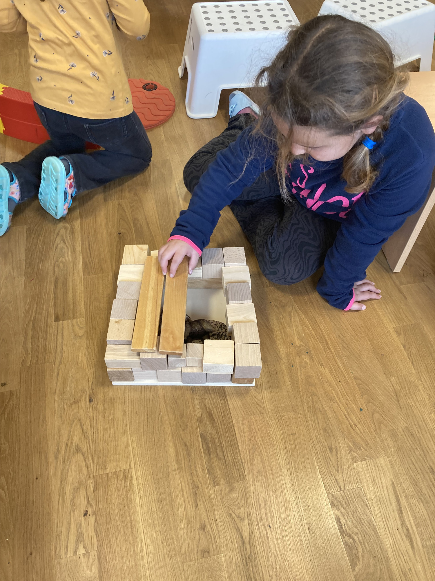 AbgelaufenUnser Thema im Kindergarten sind die Tiere im Winter. Die Kinder haben die Geschichte von Wanja gehört, ein Spurenlied gesungen, Waldtiere gefaltet und gelernt, was die Waldtiere im Winter machen. Dazu mussten die Kinder in kleinen Gruppen eine Höhle für den Igel oder für den Dachs bauen, damit dieser dort seinen Winterschlaf machen kann. Eifrig machten sich die Kinder an die Arbeit und in kurzer Zeit entstanden vielfältige Höhlen und Verstecke, einige sogar mit einem Balkon, einem Sofa oder einem Fernseher, damit es den Tieren nicht langweilig wird.